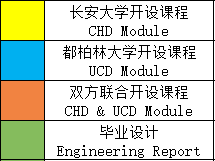 Through the cooperative education, the horizon of domestic students will also be extended from the perspectives of the international culture and education, to further advance the development of China’s economy and society, especially in the area of roadway, bridge and crossing river Engineering. The main teaching languages of this project are Chinese and English: the general education courses for Chinese are taught in Chinese, the disciplines and major related courses are taught in both Chinese and English, and the UCD courses are taught in English.