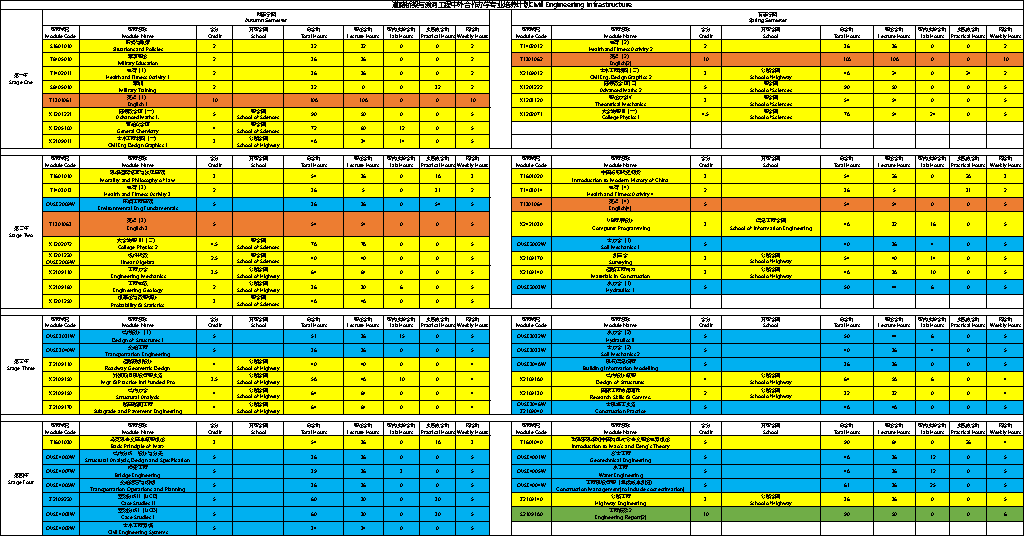 Chang’an University: Civil Engineering Design Graphics I,Civil Engineering Design Graphics II, Research Skills &Communication, Structural Analysis, Materials in Construction, Design of Structures II, Management and Practice for International Funded Projects, Applied Statistics for Engineering Decision Making.