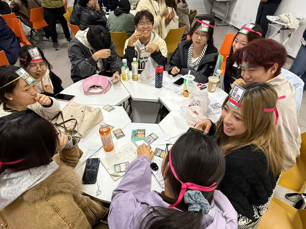 本次活动分为“Don’t Take on Challenges”和“Free Talk”两个环节。在“Don’t Take on Challenges”环节中,同学们参与了一场以环保为主题的卡牌游戏。每人随机抽取并佩戴卡牌,其他同学通过提示引导对方做出卡牌上的动作使其“踩坑”,最终未“踩坑”者获胜。本次英语角帮助同学们在轻松的氛围中提升英语表达能力,同时深化对环保议题的认知。