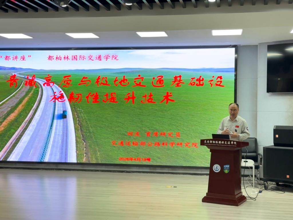 4月19日,学院举办“都”讲堂第34期学术讲座。本次讲座特邀交通运输部公路科学研究院首席研究员田波作专题分享,主题为“青藏高原与极地交通基础设施韧性提升技术”。讲座由院长张久鹏主持,我校相关院系师生共同参与本次讲座。